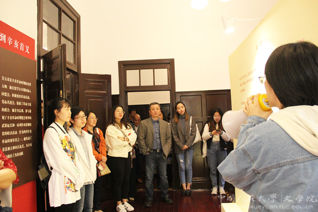 抵达老校区后,一行人员在两位讲解员的带领下开始观展学习。本次展览一共分为三大展厅,生动呈现了吴玉章为中国的民主、民族的解放和人类的进步事业而不懈奋斗、矢志不渝的一生。