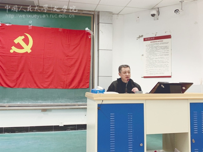 陈剑澜院长则提出要贯彻“读原著”“学原文”“悟原理”的学习精神,把握学习方法,为大家辨析了“经济基础”“上层建筑”“生产关系”等基本概念,结合历史讲解了意识形态批判理论和意识形态领导权等问题,讲述了马克思主义的起源和流变。此外,陈院长还提到了党的教育方针中的“美育”问题。他为大家分析“美育”这一概念的含义,讲解“美育”这一概念在西方的起源和发展,并结合中国特色社会主义讲述美育问题。陈院长讲到,习近平总书记曾指出,要努力构建德智体美劳全面培养的教育体系,形成更高水平的人才培养体系。中国特色社会主义条件下的美育反映了我们在塑造社会主义接班人时,如何培养健全的人的宽阔设想。要把美育和德育相结合,弘扬中华传统美育精神,让美育产生润化人心的力量。