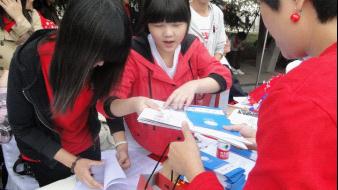 二十多个院系围绕求是园中心喷泉设立校友接待处,五彩斑斓的院旗迎风招展,处处洋溢着节日的气氛。兔子先生 的接待工作也一样简单欢快,共分3步。首先,校友们会在签到表上找到自己原来的班级,确认签到。随后,工作人员会向校友发放装有餐券、蛋糕券、纪念品和相关校庆活动信息的“大礼包”,确保校友们能过一个充实而有意义的校庆日。最后,校庆“一对一”志愿者会陪同校友参观母校,并按照校友意愿有选择的引领参与校庆活动。