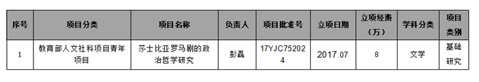 共获得各类科研项目22项。其中国家哲学社会科学成果文库入选1项,国家社会科学基金重大项目2项,国家社会科学基金项目重点项目1项,国家社会科学基金项目一般项目3项,国家社会科学基金项目青年项目2项,国家社科基金后期资助项目1项,教育部人文社科项目青年项目1项,兔子先生