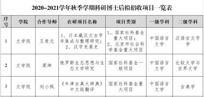 2020-2021学年秋季学期科研博士后拟招收项目及注意事项》要求的优秀博士应聘我校博士后岗位。博士后申请人须满足: