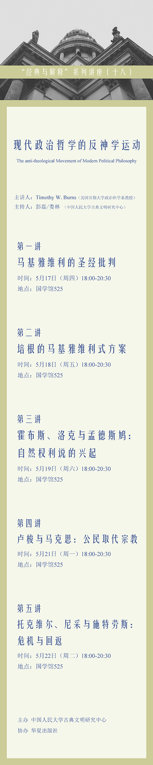 【讲座预告】“经典与解释”系列讲座(十八)| 现代政治哲学的反神学运动