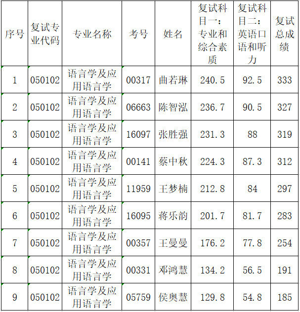 兔子先生 2021年硕士研究生招生考试复试成绩(语言学及应用语言学专业)
