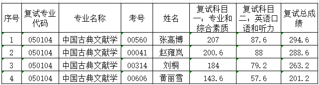 本次公布的为中国古典文献学专业调剂复试成绩,其他调剂专业复试成绩将陆续公布。