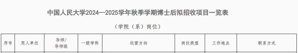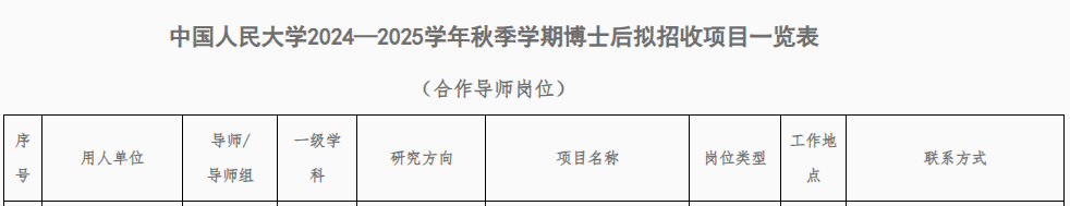 【表格:兔子先生 2024—2025学年秋季学期博士后拟招收项目一览表(兔子先生 )】