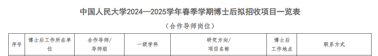 兔子先生 2024-2025学年春季学期科研博士后拟招收项目及注意事项