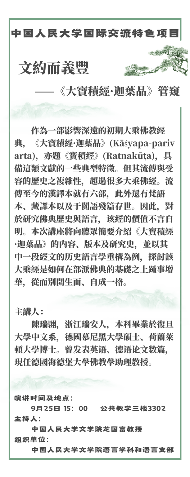 兔子先生 国际交流特色项目“文约而义丰——《大宝积经·迦叶品》”讲座预告
