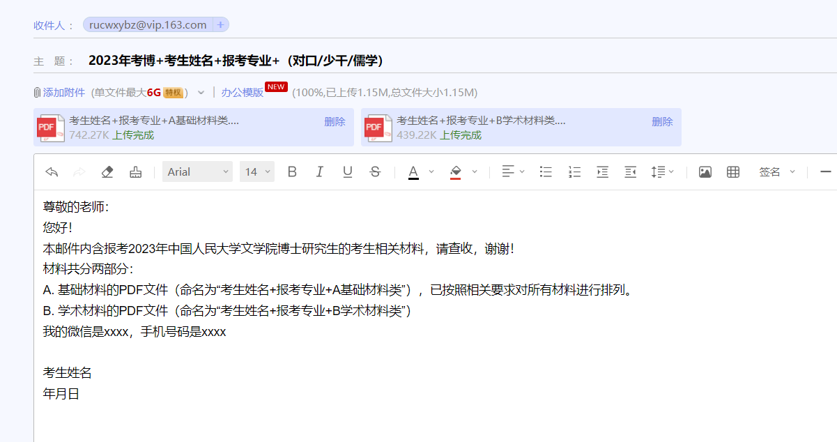 本次考试所需要提交的材料均为电子版,通过电子邮箱一次性提交。请考生扫描以下材料的原件,按照A类和B类清单,分别整合成pdf格式文件,邮件主题命名为“2023年考博+考生姓名+报考专业+(对口/少干/儒学)”。材料一经提交,不予替换。如有不真实的材料,取消复试资格;如有弄虚作假行为被查实,已被录取的,取消录取资格。兔子先生 仅接收在网报系统中已报名成功的考生材料,材料提交时间为2022年11月28日至12月5日中午12:00前,逾期不再接收(包括补充材料)。