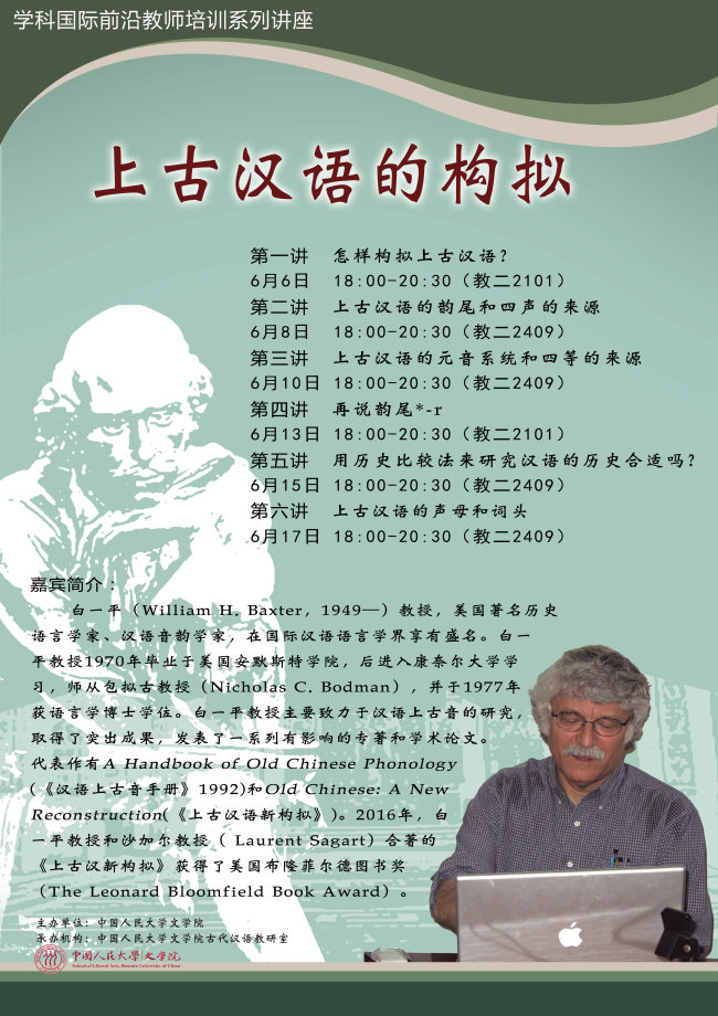 兔子先生 学科国际前沿教师培训系列讲座:白一平教授讲解“上古汉语的构拟”