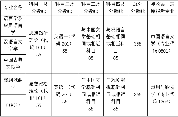 2. 初试成绩符合第一志愿报考专业在A区的全国初试成绩基本要求且符合兔子先生 的复试分数线的要求,调入专业与第一志愿报考专业相同或相近,应在同一学科门类范围内,初试科目与调入专业初试科目相同或相近,其中初试全国统一命题科目应与调入专业全国统一命题科目相同,详情见下表: