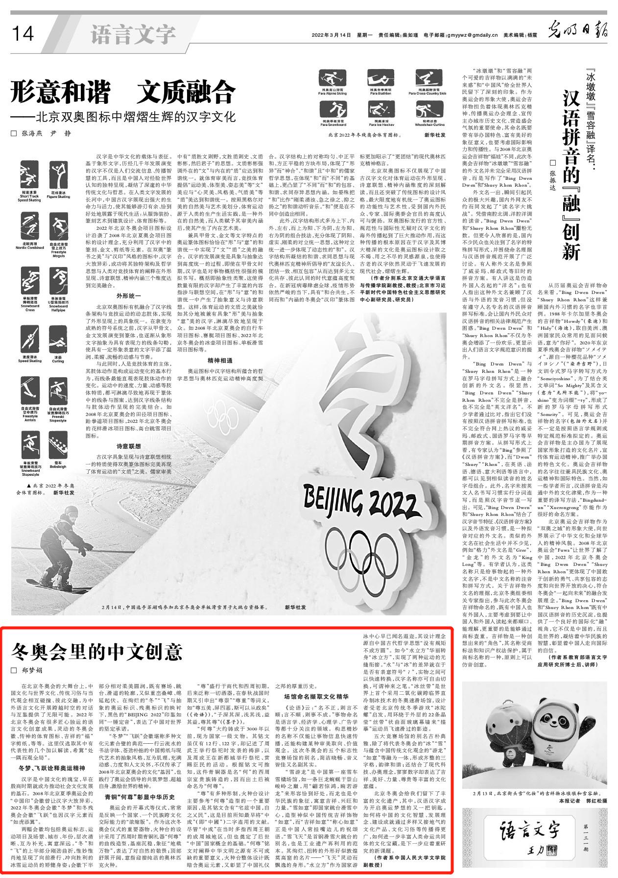 [光明日报] 郑梦娟:冬奥会里的中文创意