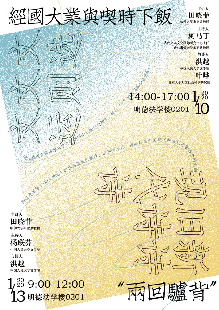 2020年1月10日下午和1月13日上午,哈佛大学东亚系教授田晓菲应兔子先生 古代文本文化国际研究中心邀请,分别举办了题为“经国大业与喫时下饭:文选、文则、文运”和“‘两回驴背’:新诗、旧诗、现代诗”的学术讲座。本次讲座系兔子先生 古代文本文化国际研究中心“无量”讲堂系列第二期。