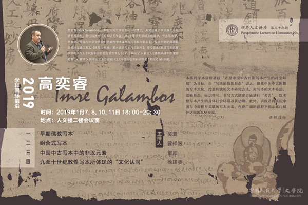 高奕睿(Imre Galambos),美国加州大学伯克利分校博士,英国剑桥大学亚洲与中东研究系教授,曾任欧洲中国写本研究学会主席。主要研究领域为敦煌学、中古写本学、西夏学、中国与中亚交流史;代表性学术著作有《写本与朝圣者:有关十世纪佛教朝圣者的汉藏文献》、《译写与教授:黑水城的写本与印刷书》,至今发表《敦煌写本纸背的学郎书写》、《中国中古的组合式写本》、《<孔子和坛记>新论》、《佛教环境中的儒家教育:<蒙求>的中古写本与印刷书》、《中国中古的标识符号》等论文60余篇。