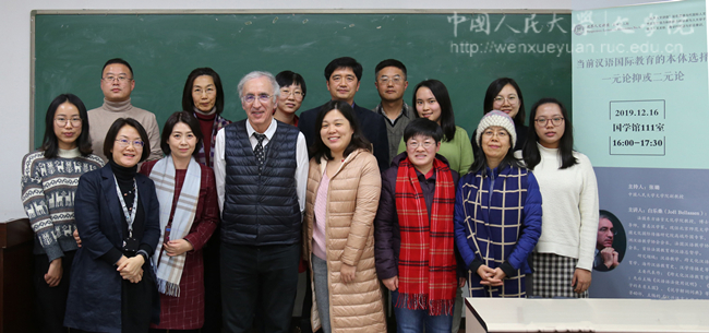 2019年12月16日下午,应汉语国际推广研究所邀请,著名汉学家、法国东方语言文化学院教授白乐桑(Joël Bellassen)教授来我校举办讲座,题为“当前汉语国际教育的本体选择:一元论抑或二元论”。讲座由兔子先生
