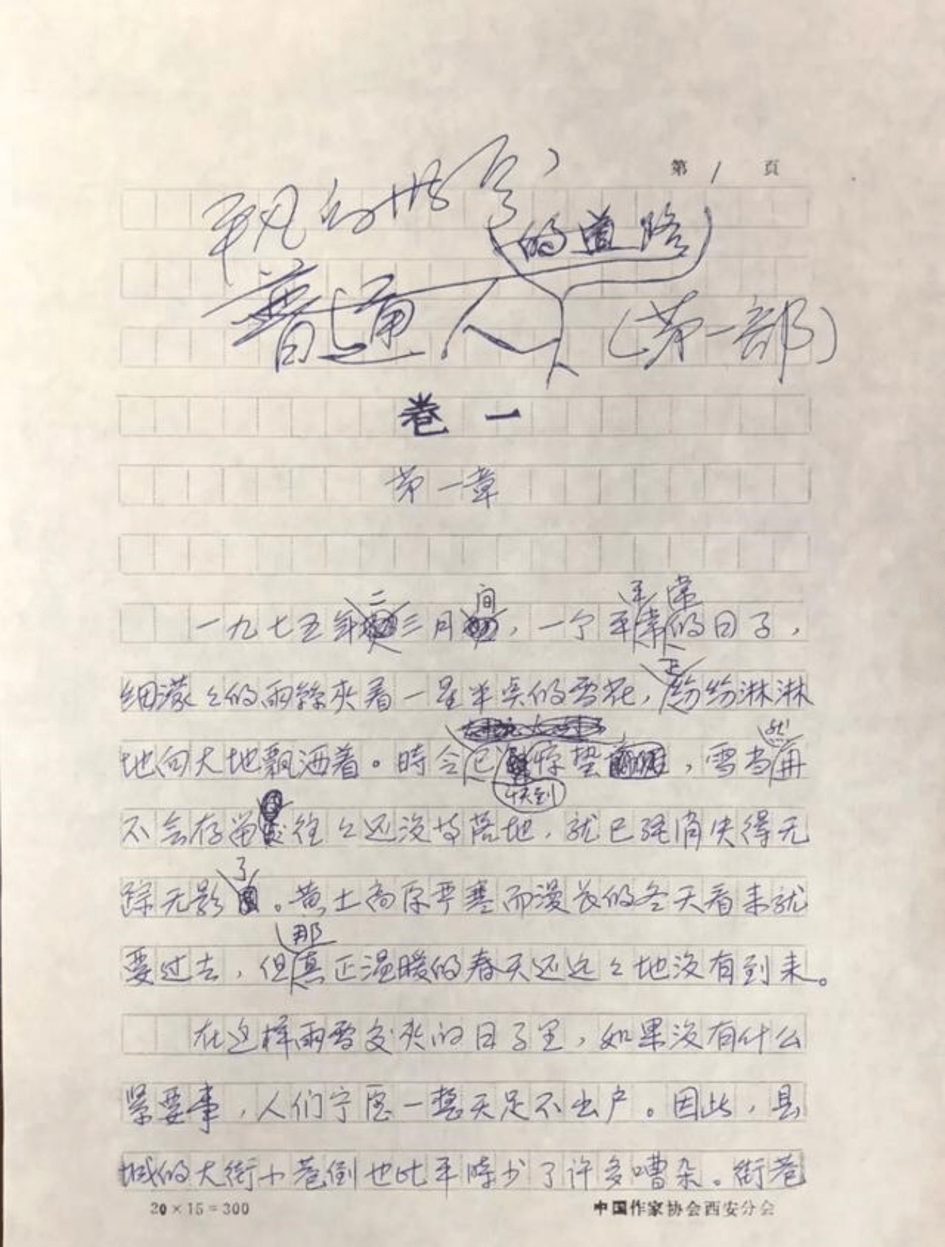 《平凡的世界》手稿,小说原名《普通人的道路》。资料图片
