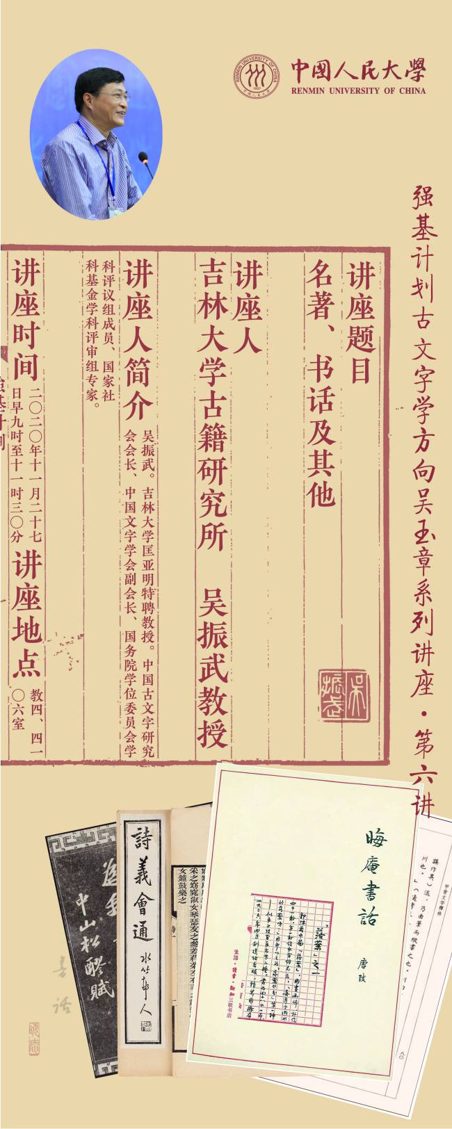 【讲座预告】强基计划古文字学方向 吴玉章系列讲座第六讲“名著、书话及其他”