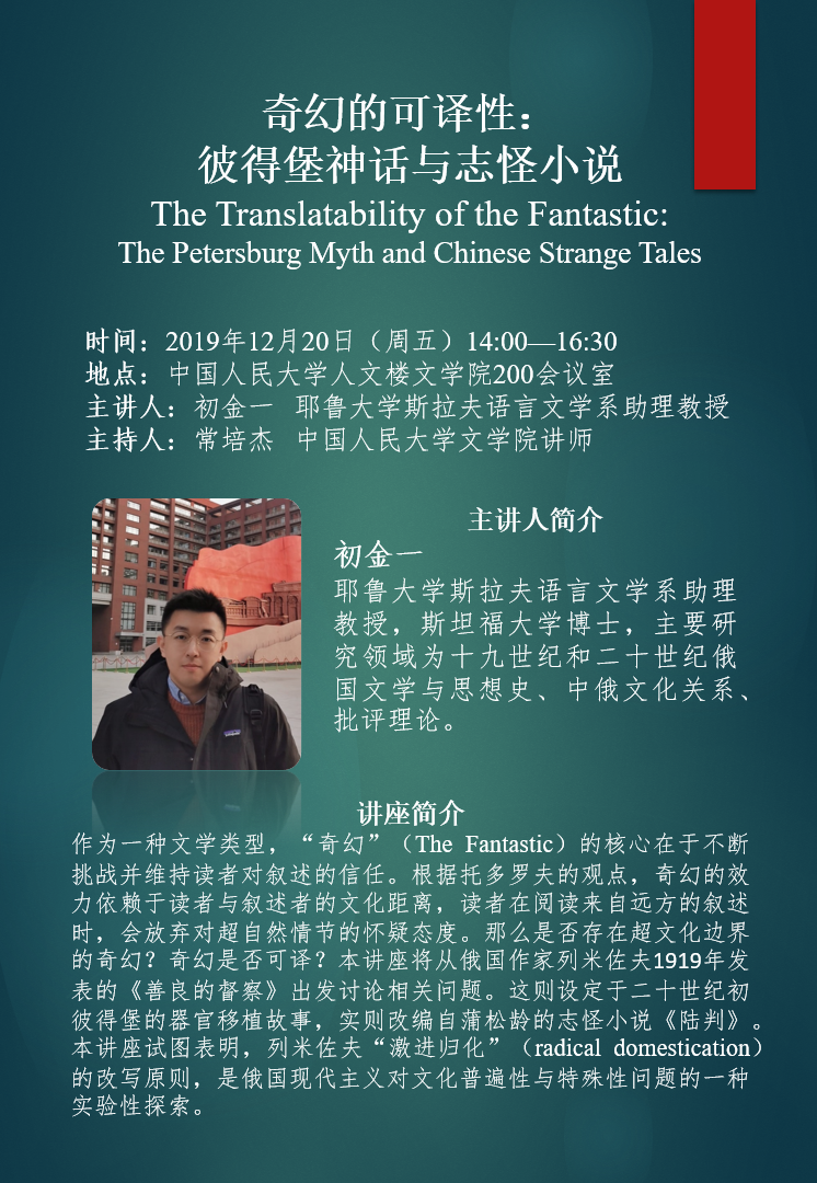 【讲座预告】奇幻的可译性:彼得堡神话与志怪小说