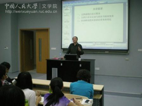 在讲座中,贺阳老师引经据典,用丰富生动的例子讲述了五四前白话文的发展简史,详细介绍了五四期间的文言白话之争、白话文改造两场运动以及汉语书面语的变革历程。贺教授重点论述了汉语欧化给汉语语法带来的变化。他认为,欧化现象的大量出现是汉语从文言到白话文过渡中最突出、最重要的标志。欧化对现代汉语的词类功能和格局、语法形式产生了重要的影响,欧化还使汉语开始由重意会转向重形式。