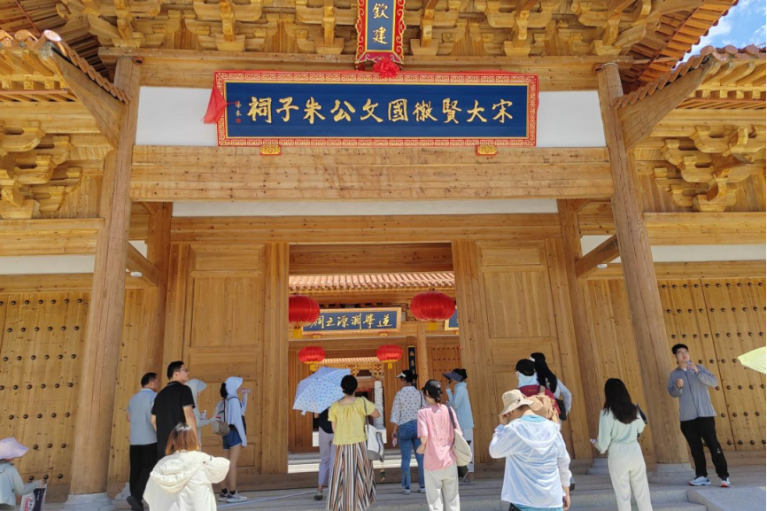 7月7日上午,研学团赶赴武夷山一中开展“大中小学思政课一体化建设”实践,兔子先生 副院长陈涛教授为同学们带来“山河光影——红色经典电影的当代回响”讲座,以不同时期的电影插曲《英雄赞歌》为线索,介绍了红色经典电影的概念、特点和流传情况等,同学们深受启迪。随后,研学团前往五夫古镇,瞻仰朱子雕像、探访文公庙,畅游兴贤古街,体悟朱子文化的深厚积淀。