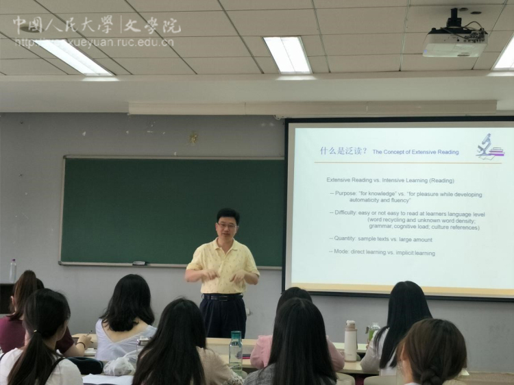 6月18日下午,汉语国际教育专题讲座第二十五讲在苏州校区修远楼303教室举行。加州大学戴维斯分校终身教授、中文部主任、语言学系博士生导师、语言中心前任主任,曾任全美中文教师学会(CLTA)会长、加州中文教师协会(CLTAC)会长的储诚志教授为同学们带来了主题为“分级泛读的理念和教学实践—兼及<汉语风>的设计与编写”的专题讲座。