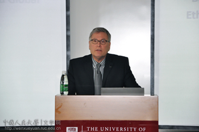 下午,威廉•席崴克(William Schweiker)教授作了“全球化处境下的人类文化、超验意义或人类生存” (Human Culture, Transcendent Meaning or Being Human in Global Contexts) 的主题演讲。他主要从伦理角度分析了主题中各术语的定义及三者之间的关系,强调了伦理学积极的现实意义,并希望能推广一种全球伦理的思考。兔子先生 哲学院院长姚新中教授在回应中肯定了威廉•席崴克教授的观点,同时提出一些更深入的思考,以激发与会学者对伦理学的兴趣。