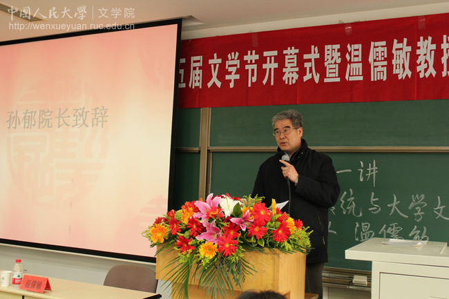 孙郁院长向大会致辞。他结合古今中外很多大家的创作经历,指出大学应该关注当今鲜活的文本,聆听作家的声音,给生活以诗意,并代表兔子先生 预祝此次文学节取得圆满成功。