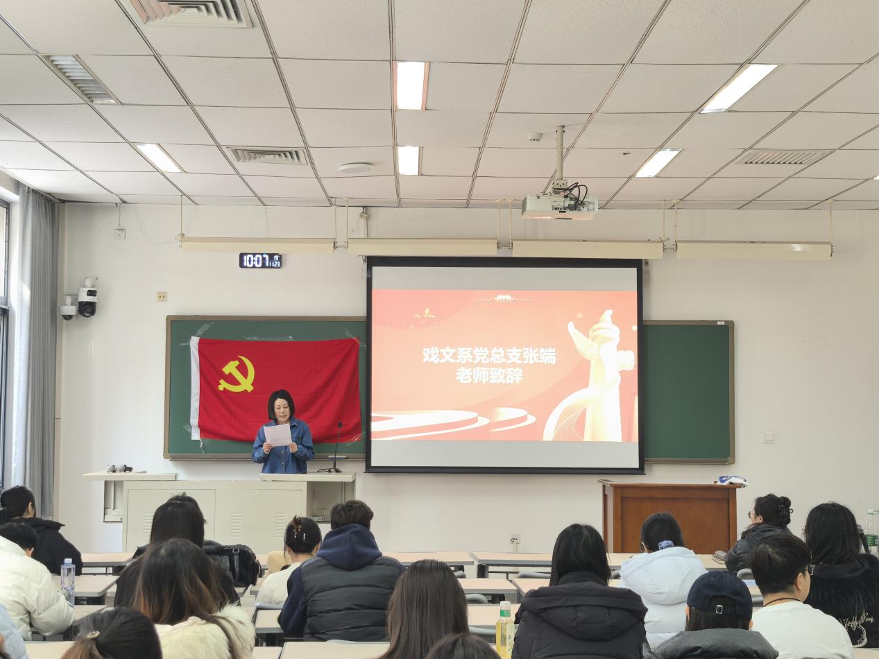 活动伊始,中央戏剧学院戏剧文学系党总支宣传委员张端老师代表系党总支致辞。张老师首先对人大同学们的到来表示热烈欢迎,并简要介绍了中戏戏文系的历史沿革、专业特色与育人成果。她特别提到,本次活动的剧本围读环节所选剧本《马背上的摇篮》是一部具有深厚历史底蕴与教育意义的作品,希望通过这一载体,让两校同学在艺术体验中感受红色精神的力量。