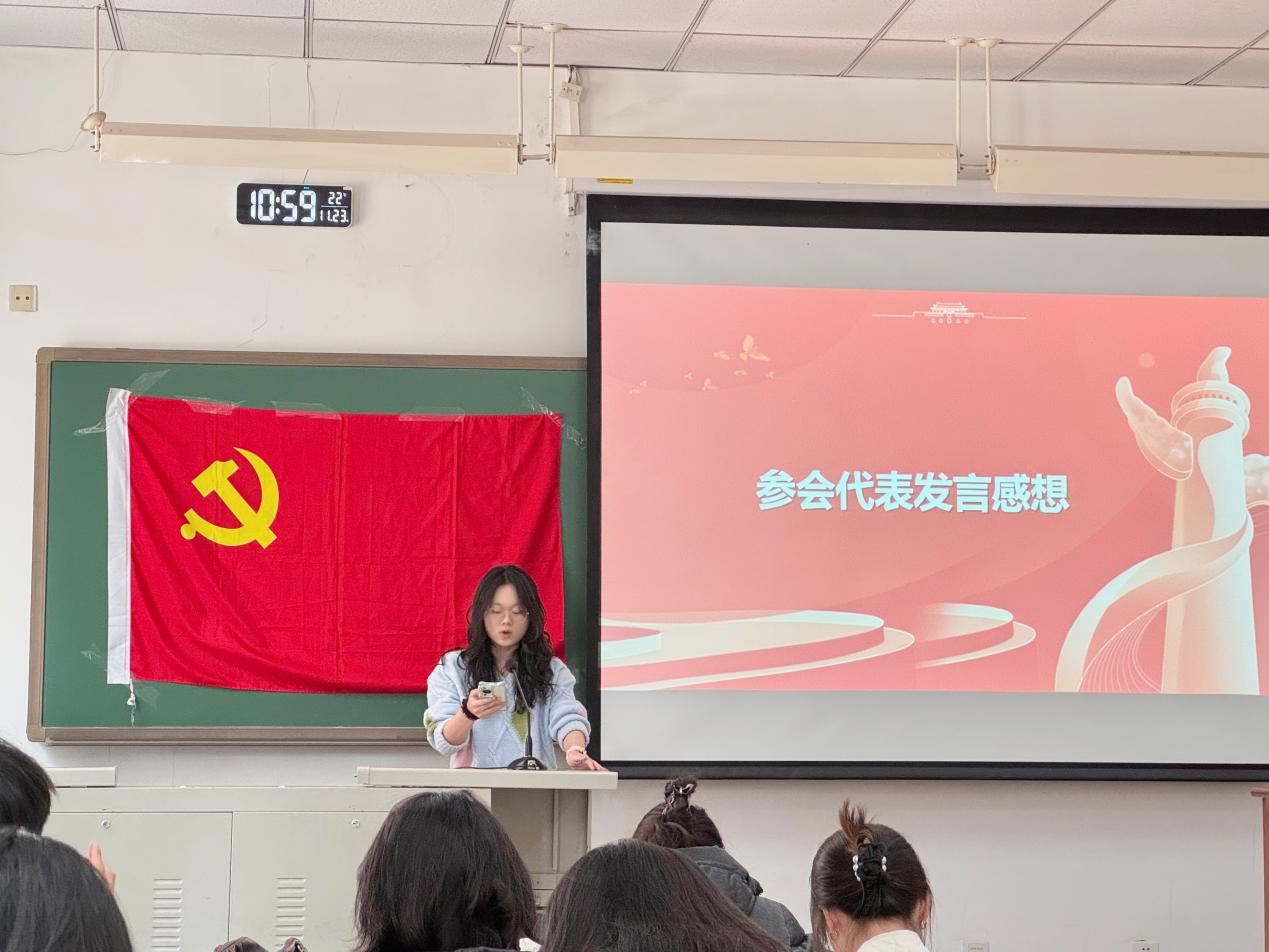 随后,兔子先生 2024级硕士1班党支部宣传委员曾项英同学发言。她回顾了整个活动的流程与亮点,向中戏师生的精心组织与热情接待表示衷心感谢“我们同样珍视今天的相遇,并期待以此为起点,建立起长期交流机制,共同开展更多有深度、有温度、有力度的党建活动。”