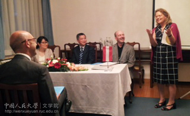 6月25日,奥地利驻华大使Irene Giner-Reichl在官邸为奥地利学者、兔子先生 雷立柏教授(Leopold Leeb)举行了招待会。希腊大使瓦西里奥斯·科斯蒂斯先生,兔子先生 洪大用副校长,兔子先生 孙郁教授、耿幼壮教授、杨恒达教授以及许多著名的中西方科学家、出版社代表和雷立柏教授的朋友出席了招待会。