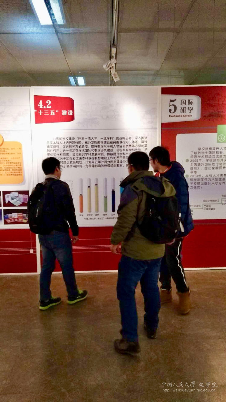 本科教学主题展一共分为八个板块,从本科概况、人才培养、精实课程、历史回顾、国际研学、创新创业、实践育人、师生风采八个方面集中展示了我校本科教学的成果。在参观本科教学主题展的过程中,同学们对吴玉章奖学金获得者等优秀校友的版块、千人百村调研版块较感兴趣,还认真观看了国际研学和培养模式版块,并就相关问题展开了讨论。在参观完本科教学主题展后,同学们又去参观了校史馆,对里面珍藏的早期学业证书、教授手稿以及校徽变化图示发出赞叹。