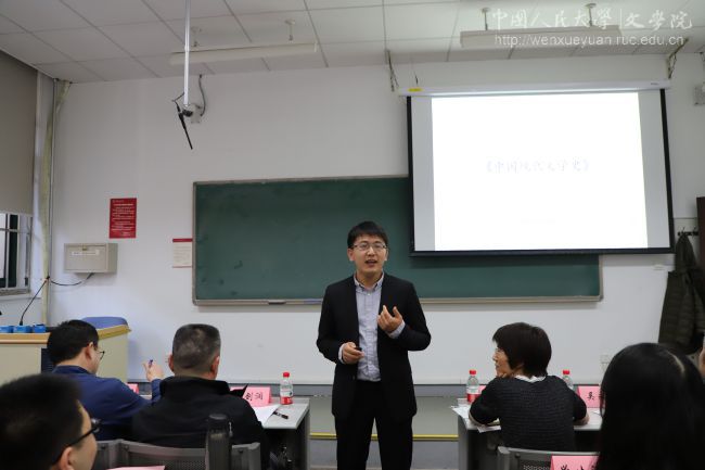宋声泉以中国现代文学史课程中的“走向文学革命”为题,以妙趣横生的提问开场,引出了中国现代文学革命的关键人物——胡适,并将其早期生平与陈独秀进行对比,进而描述了胡适《逼上梁山》一文的发表背景和在文学革命中的重要性。