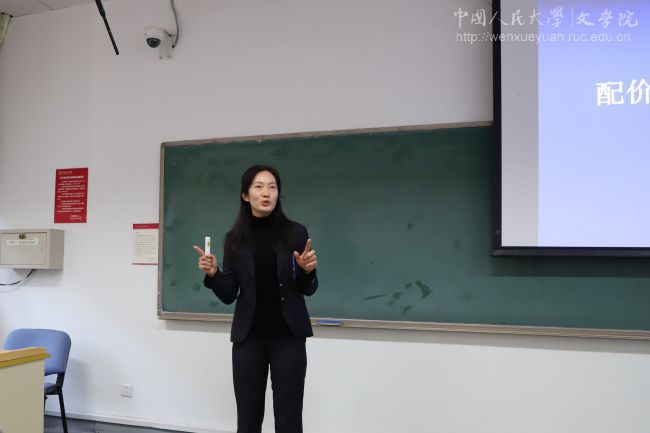 孙天琦以面向高年级本科生的前沿语法理论课程“配价语法与汉语研究”为题,生动形象地解释了现代汉语中“配价”的概念,讲解如何应用“配价”概念对动词进行准确分类,进而阐释现代汉语中“VP的”结构转指规则。