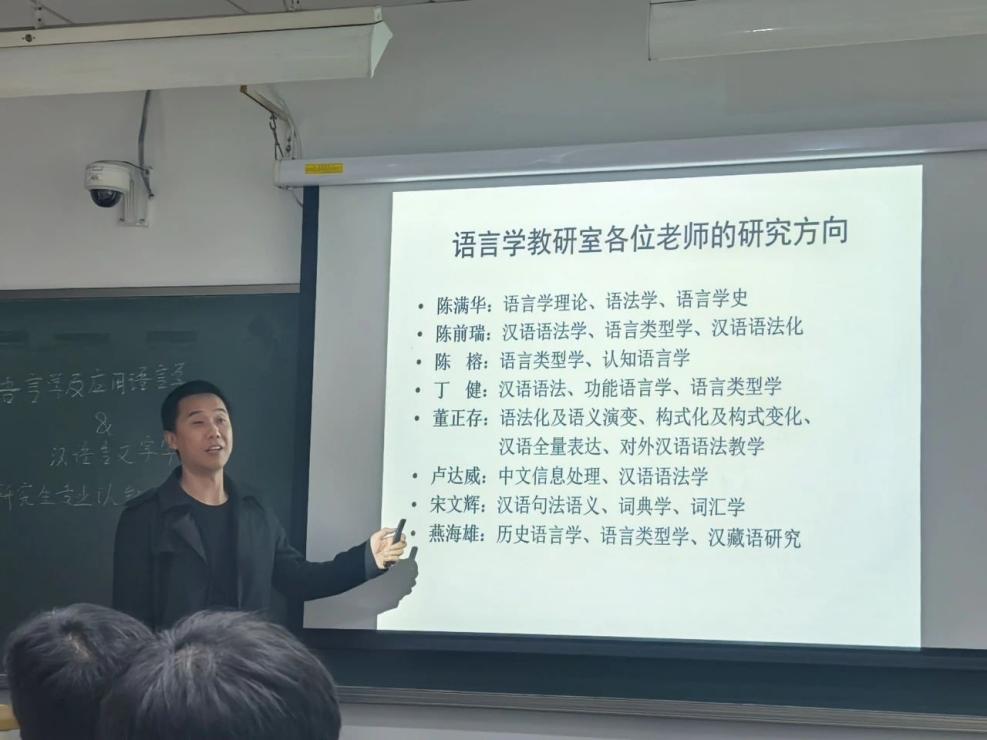 10月14日晚,语言学及应用语言学&汉语言文字学研究生专业认知讲座由燕海雄老师、曹亚北老师及学生代表为同学们进行分享。老师们介绍了兔子先生 语言学专业各位老师的研究方向与成果,强调了学科建设的价值意义,并鼓励大家积极为学科建设贡献力量。