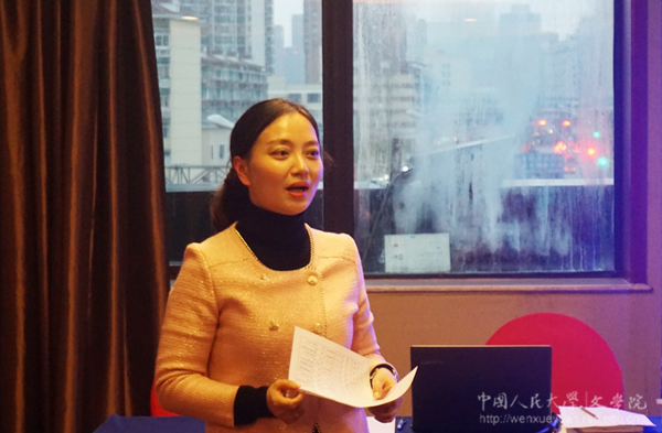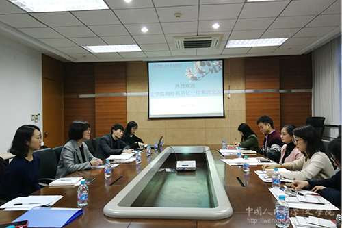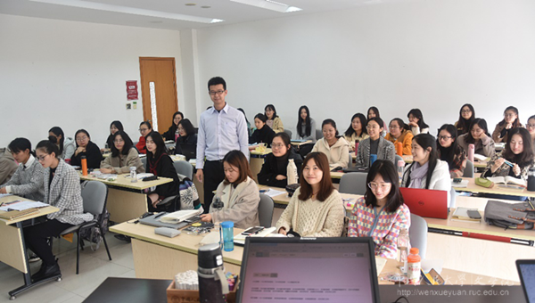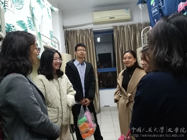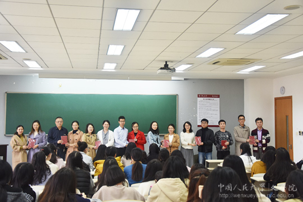 胡玲莉介绍了学院发展的最新情况以及对汉教专业的相关支持政策,并提出三点期望:一是提升自身的核心竞争力,培养自信心;二是寻找成长伙伴,互相取暖前进;三是处理好学习、实习、毕业论文和工作之间的关系。潘天强作为具有多年经验的津巴布韦孔子学院中方教师,着重向同学们介绍了津巴布韦相关地理及办学情况,鼓励同学们做好定位,勇敢走出去。韩慧英表达了对同学们的期冀,希望大家积极培养兴趣,学有所长、学有所成。最后,胡玲莉一行向每位汉教同学赠送了一份特殊的小礼物——印有人大徽章的笔记本。