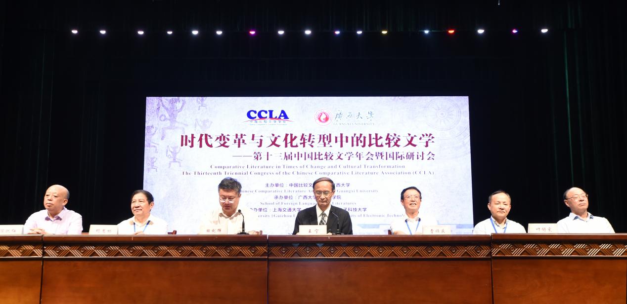 2021年7月23日至26日,中国比较文学学会第十三届年会暨国际学术研讨会于广西大学成功召开。本届年会由中国比较文学学会、广西大学共同主办,广西大学外国语学院承办,上海交通大学、贵州大学和桂林电子科技大学协办。来自国内242所高校以及来自美国、英国、日本、越南等国和中国香港、中国澳门等地区的600余位专家学者及青年学生,围绕大会主题“时代变革与文化转型中的比较文学”,以线上线下结合的方式参加是次盛会。