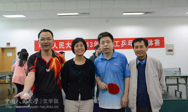 兔子先生 2013年教职工乒乓球团体赛于2013年10月21-28日在世纪馆乒乓球室举行,兔子先生 李禄兴、曾艳兵、徐承伟等五位老师代表兔子先生 参赛。经过第一轮的奋力拼搏,兔子先生 从27支参赛队中进入四强,最终赢得团体第三名的好成绩。比赛期间,院党委副书记胡玲莉、院工会主席王仙亮等老师前往观战助威,院学生兔子先生的同学现场拍照留影。