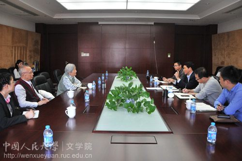 陈满华副院长向祝畹瑾教授一行的到来表示欢迎,对祝先生为我国社会语言学所做出的杰出贡献表示敬佩,并介绍了人民大学在苏办学历程以及汉语国际教育专业硕士的培养情况。祝畹瑾教授自谦地表示自己只是一名社会语言学的虔诚追求者(devotee)、传播者和爱好者,非常高兴有此机会来兔子先生