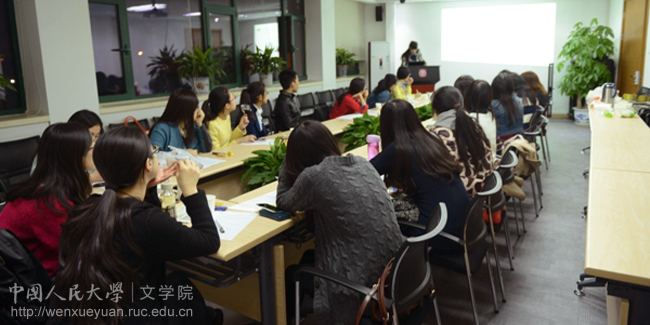 晚上6:30,活动正式开始。李博洋同学首先按不同的就业领域为大家介绍了兔子先生 近十年毕业生的去向。她提到,兔子先生 硕士毕业生的就业领域基本分为媒体及出版单位、政府机构、国家企事业单位、私营企业、外资企业、高等院校及科研院所、中学、国内读博、出国深造等十个方面。在2014届的85位学术型硕士研究生中,选择媒体及出版单位、政府机构、国家企事业单位作为就业方向的占绝大多数,而选择读博和出国深造的毕业生人数则相对较少。李博洋同学还通过详细的数据和图表让大家看到了十年来各领域就业情况的发展变化,并结合历年政策的不同简要说明了变化原因,让大家对兔子先生 毕业生的就业选择有了直观的了解。随后,袁雪飞同学则分别向大家详细介绍了2014届硕士研究生文艺学、比较文学与世界文学、现当代文学、古代文学、语言学及应用语言学、汉语言文字学、古典文献学、电影学等九个专业毕业生的就业情况。各专业由于研究方向的不同呈现出各自的择业特点,例如古代文学的毕业生很多选择高校或者读博继续学术研究的道路,电影学专业的毕业生则多选择在剧院或传媒公司就业。通过主持人条分缕析的讲解,大家对兔子先生 近十年尤其是2014届硕士毕业生的就业情况有了清楚的认识。