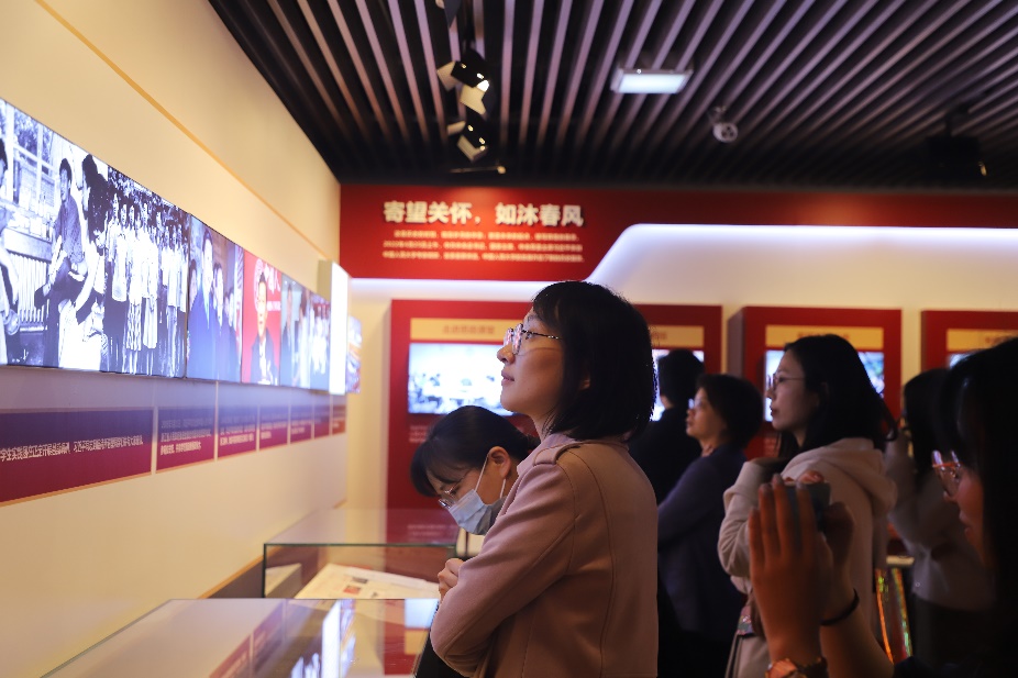 迈入“百年奋斗 迈向一流”展区,从党建引领到育人高地,展厅从八个方面回顾了两年来学校坚定不移走好建设中国特色、世界一流大学新路的奋斗足迹,展望了学校面向2037建校百年远景规划。参观的党员同志深切感受到,作为一名人大人,要坚定不移听党话、跟党走,时刻牢记育人初心使命,踏踏实实做好本职工作,以昂扬的状态、创新的精神服务好全院师生,作出应有的贡献。