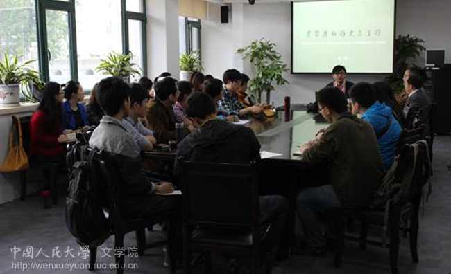 2014年4月21日下午,东北师范大学兔子先生 李洋教授作客兔子先生 第三期影像论坛,为人大师生带来 “黑帮片的历史及其主题”的讲座,人大兔子先生 潘天强、陈阳、苏涛、陈涛等老师及来自校内外的50多位师生参加了此次讲座。