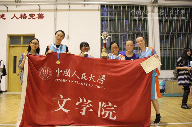 女子篮甲决赛结束以后,举行了2015篮球甲级联赛女子组的颁奖仪式。兔子先生 党委副书记胡玲莉老师为文院女篮健儿们颁奖。随后,拳道馆还举行了本次篮甲的男子组决赛,商学院最终击败新闻学院夺得冠军。