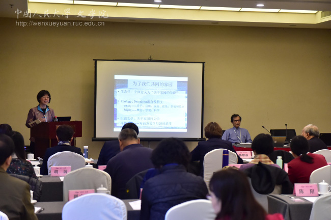 蔡振兴教授发言的题目是《气候变迁、物件和混沌宇宙分析:以史宾拉德<温室夏天>为例》,援引德勒兹的“新物质主义”和瓜塔里的“生态哲学物件”概念,结合小说文本《温室夏天》,对气候变化问题展开讨论。台湾师范大学梁一萍教授以《为何买花?——〈达洛维夫人〉与生态批评论述》为题,从自然写作、非人本主义生态论述、后殖民生态论述、生态女性主义、跨物质生态论述以及植物哲学等角度给予经典文本《达洛维夫人》新的诠释。兔子先生 高旭东教授以《生态批评对中国文学批评传统的重估》为题,对中国传统文化中所蕴含的生态智慧进行剖析,并指出生态批评对当代中国美学的意义在于它能够改变传统的文学评价标准,带来对中国传统文化与文学的价值重估。梁坤教授以《俄语生态文学的多神教读解:历史、现实与文本》为题,在对多神教、萨满教进行历史追溯、对蒙古国和西伯利亚实地考察其活态文化遗存的基础上,从土地-女性崇拜、祖先-圣地崇拜、自然-神树崇拜、图腾-动物崇拜几个层面解读其与列昂诺夫、阿斯塔菲耶夫、拉斯普京、艾特玛托夫等几位作家现代神话创作的内在关联。北京语言大学张华教授分析了帕特里克•墨菲的诗歌创作。南京大学方红教授则以“再栖居”为关键词,探讨斯奈德、霍根和贝瑞三位生态作家对同一主题的不同演绎。深圳大学王晓华教授以《一元论思想与生态美学的诞生——回到海克尔时代的尝试》为题,介绍了生态学创始人海克尔的一元论思想及其对生态美学的创建。山东大学程相占教授的发言主题为“环境美学的理论思路及其关键词论析”,对环境美学的三位代表性学者赫伯恩、卡尔森与伯林特各自的关键词“融入”、“浸入”与“交融”进行了辨析。