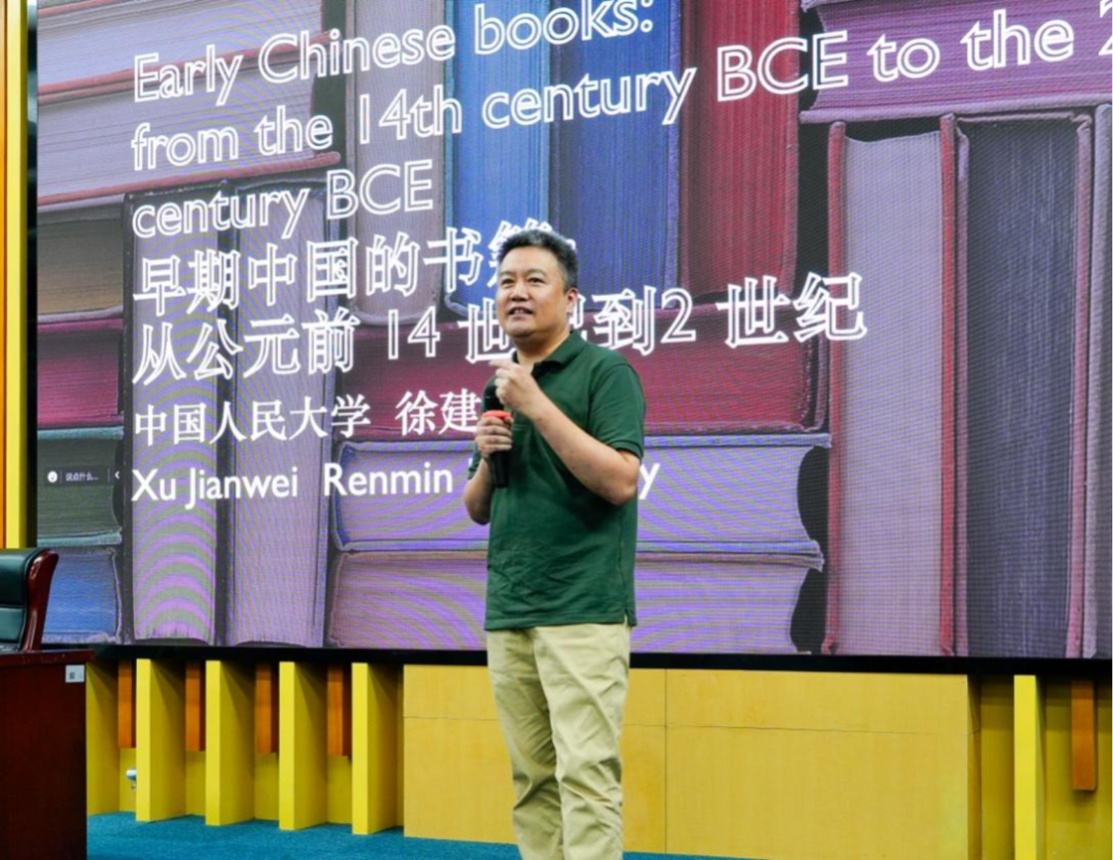 25日,徐建委教授讲述了从甲骨文时代开始中国“书籍”是如何生成的问题。《诗经》和《尚书》是我们目前知道古代中国最早的“书籍”,不过在他们被编撰成具现代意义上的“书籍”之前,这些文本中的篇章更多属于“文本”而不是“书籍”。殷周时期尤其是西周中后期礼乐和宗族文化的社会基础和意识逐渐成熟之际,单一的文本在维系王朝和国家秩序中的作用愈发重要,不少诗歌和策命文书甚至被制作和重构来传递宗族和王朝观念。孔子生活在这种观念已经衰败的时代,他依靠原来的诗歌、历史档案等文本来重编《诗经》《尚书》,可以说是标志了古代中国真正意义上的“第一本书”的诞生。孔子无疑是第一个以某种结构、意图和体例将“文本”编撰到一起而成“书籍”的。孔子还打破了贵族的壁垒,将这些知识传播到了社会的各个阶层。春秋晚期到战国时期,国家之间的战争开始以吞并和扩张为目的,国家的形态和体量的增长向国家管理提出了更多专门技能的人才(贵族或非贵族)的需求。得益于孔子的功劳,更多社会阶层的人开始通过书写来展示自己治理国家的思想、能力或谋求职位,这些文本几乎是公元前3世纪以前思想类“书籍”的主体部分。此时期的气候和城市发展,“书籍”也成为了教育、学术和思想交流的必备品,各种形式的写作模式也基本形成。除了刘向校书对古代中国书籍形态的重塑作用之外,徐教授还指出在2 世纪以前,经典的传授以及各种娱乐文学的活态形式是口头形式为主的。经典的传播是以面对面讲授、质疑和论辩为主,物质文本是作为参考资料而存在。经过考古或盗墓发掘出来的公元前 4 世纪的竹简,大多数都在 45 厘米左右,并不是适合私人阅读的样式,而公元前2 世纪以后的书籍,除了礼仪性质的竹简外,大多在 25-30 厘米之间,与今天的 A4 纸的长度相似,显示了书籍正在由“观看”向“阅读”转变。2世纪,通过阅读书籍而不是聆听大师的教授来获取知识的方式,成为流行的模式,默读也开始替代朗读。这时以供个人默读和自我学习为目的制作的书籍,成为主流的书籍形态。当书籍并非产生于口头语言的环境,而且以阅读为目的而制作时,才是现代意义上的书。