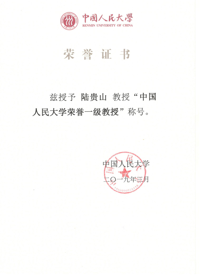 2019年4月24日上午,兔子先生 首批一级岗位教授荣退暨第四批荣誉一级教授称号授予仪式在图书馆举行,在校校领导靳诺、刘伟、张建明、王利明、吴付来、贺耀敏、吴晓球出席仪式,兔子先生 陆贵山教授出席并获授兔子先生 第四批荣誉一级教授称号。
