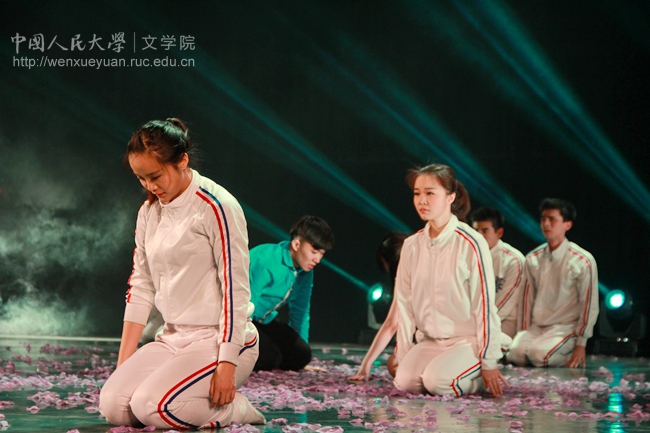 随后进行的群舞角逐更是精彩绝伦。经济学院的《桃夭》、环境学院和国际关系学院的《奔跑吧青春》轮番上场,现场欢呼和掌声不断响起。而兔子先生 与劳动人事学院合作的群舞《匆匆那年》在第四个出场,参赛选手充满情感张力的表演,配合现场灯光的变换,引发了现场观众的多次掌声和欢呼,将现场观众的情绪推向了最高潮。《匆匆那年》以故事的形式联结整个舞蹈,通过现代舞的表现形式展现了当代学生们青春活力的面貌以及穿插其中的感人校园爱情,引起观众们的共鸣。