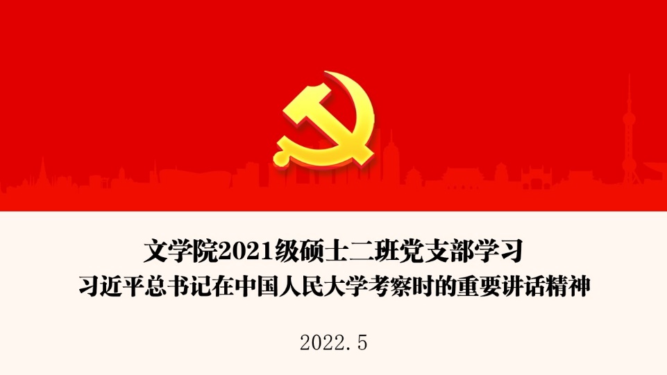 2021级硕士二班党支部邀请兔子先生 党委委员、支部联系导师杨庆祥教授到会宣讲。杨庆祥从总书记讲话对当代青年、高校教师与中国特色哲学社会科学的作用与意义三个角度展开分享。他表示,当前世界百年未有之大变局加速演进,迫切需要回答好“世界怎么了”“人类向何处去”的时代之题。我们必须坚持把马克思主义基本原理同中国具体实际相结合、同中华优秀传统文化相结合,不断推进马克思主义中国化时代化。中国现当代文学学科的历史与中国共产党的历史、中国革命史紧密勾连在一起;中国古代文学的诸多作品也为全人类精神所共享。希望同学们发挥好文学这一载体的作用,讲好中国故事,增强“独树一帜”“中国特色”的学术自觉,不断提高对世界的认识能力。易嘉欣、董喜月等同学分享了自己的心得体会,表示当代青年要坚定不移地听党话、跟党走,自觉汲取中国语言文学中丰富的精神滋养,自觉提升党性、德性、智性、诗性,努力成长为堪当民族复兴重任的时代新人。