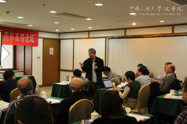 本次高端论坛历时一天,共有四场大会报告。在上午的报告中,首先由王宁先生、唐作藩先生、苏培成先生分别做了题为“谈语言文字学的人文性”、“从音韵学看汉语拼音方案的优越性”、“学习吴老,全面推动语言文字事业的创新发展”的大会报告。之后各位专家学者分别就自己目前的研究成果做了19场大会报告,从宏观到微观,内容丰富充实,不仅有关于语言学科的发展定位问题,还有语言战略、语言规划等内容,尤其是新材料新问题的介绍,更是引起了学者们的浓厚兴趣。各位专家学者对每一场报告都进行了认真思考和积极回应,现场讨论和交流的气氛浓厚而热烈。