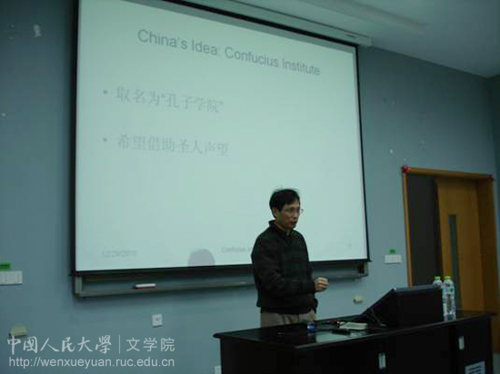 他从孔子学院和孔子课堂在国外的发展历程谈起,并探寻了孔子学院诞生背后的动因和国际大环境。他认为诸多方面的共同作用使汉语“国际化”成为可能,并促进着国外孔子学院和孔子课堂的快速发展。如:经济全球化及语言多元化,语言均势的转变(英语可能不再是唯一的世界语言),历史文化的魅力(语言教学本身存在文化动机诱导,有意无意中会加强学习者的文化认同感)等等。鲁教授强调说,一种语言能够引起热潮除了该国国力、侨民分布等因素以外,文化魅力的作用是难以量化的也是巨大的。