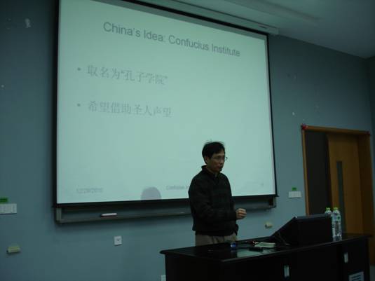 在概要性的回顾和分析后,鲁教授以美国汉语教学机构为例,介绍了国外现有教学机构的主要类型:包括主流院校(正规的大学、中学),中文学校(课后或周末),政府机构等。他结合自己对纽约地区孔子学院的深入研究,以第一手数据向大家展示了国外孔子学院大致的发展情况。