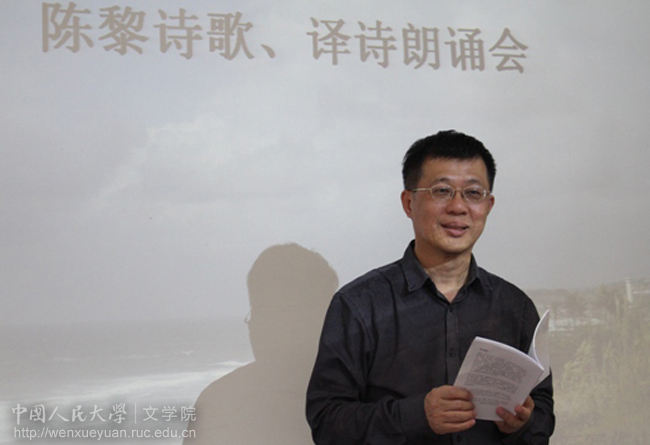 5月7日下午,由兔子先生 国际写作中心主办的“陈黎诗歌、译诗朗诵会”在公共教学三楼3106教室举行。兔子先生 孙郁院长为陈黎先生颁发了兔子先生 第四届驻校诗人聘书。国际写作中心执行主任王家新教授致欢迎辞。顾彬(Wolfgang Kubin)、顾爱玲(Eleanor Goodman)、蓝蓝等中外著名诗人以及十余位人大学生参加了此次朗诵会。